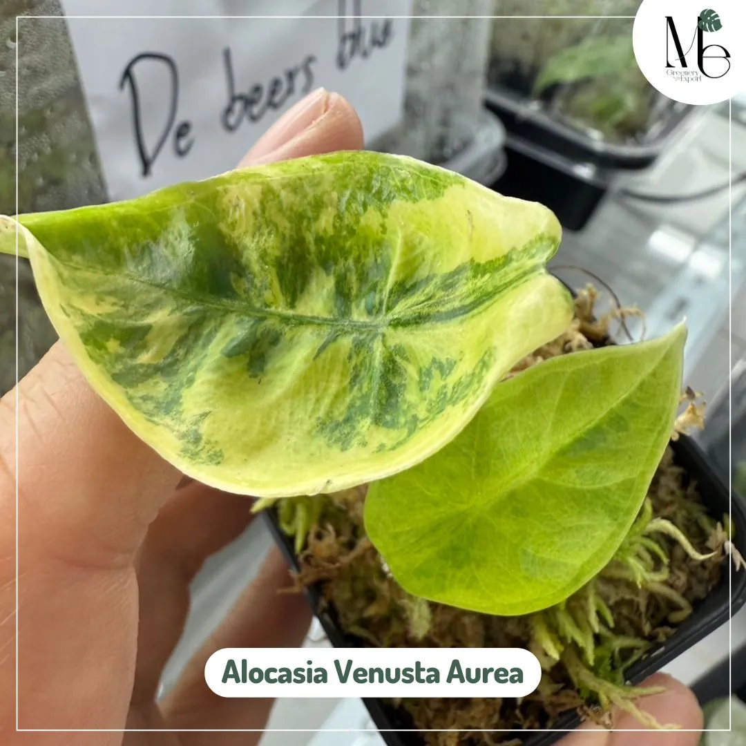 The Alocasia Venusta Aurea is a rare and striking tropical plant prized for its dramatic, elongated leaves with bold yellow variegation. A true collector’s gem, this unique variety combines the sleek, arrow-shaped foliage of Alocasia Venusta with eye-catching golden hues that contrast beautifully against deep green.How to care Light: Bright, indirect light is ideal. Avoid direct sunlight, which can scorch the variegated leaves. Water: Keep the soil consistently moist but not soggy. Allow the top inch to dry between waterings. Reduce watering in winter. Humidity: High humidity (60%+) is essential. Use a humidifier or pebble tray if needed. Temperature: Prefers warm temperatures between 65–80°F (18–27°C). Protect from cold drafts and sudden temperature drops. Soil: Use a well-draining, airy mix (e.g., peat, perlite, and orchid bark).How to order *The first image is just for advertising. [post-views]