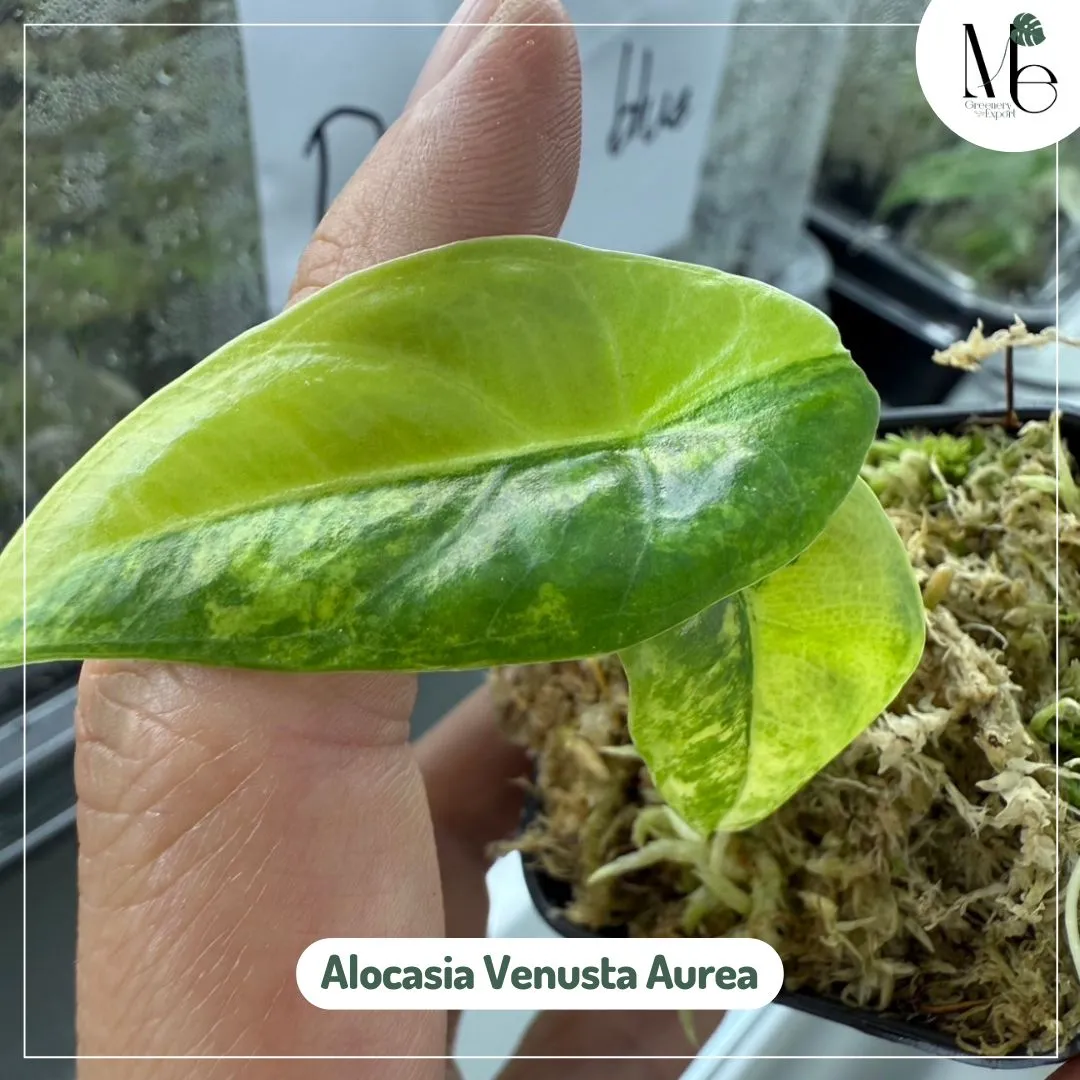 The Alocasia Venusta Aurea is a rare and striking tropical plant prized for its dramatic, elongated leaves with bold yellow variegation. A true collector’s gem, this unique variety combines the sleek, arrow-shaped foliage of Alocasia Venusta with eye-catching golden hues that contrast beautifully against deep green.